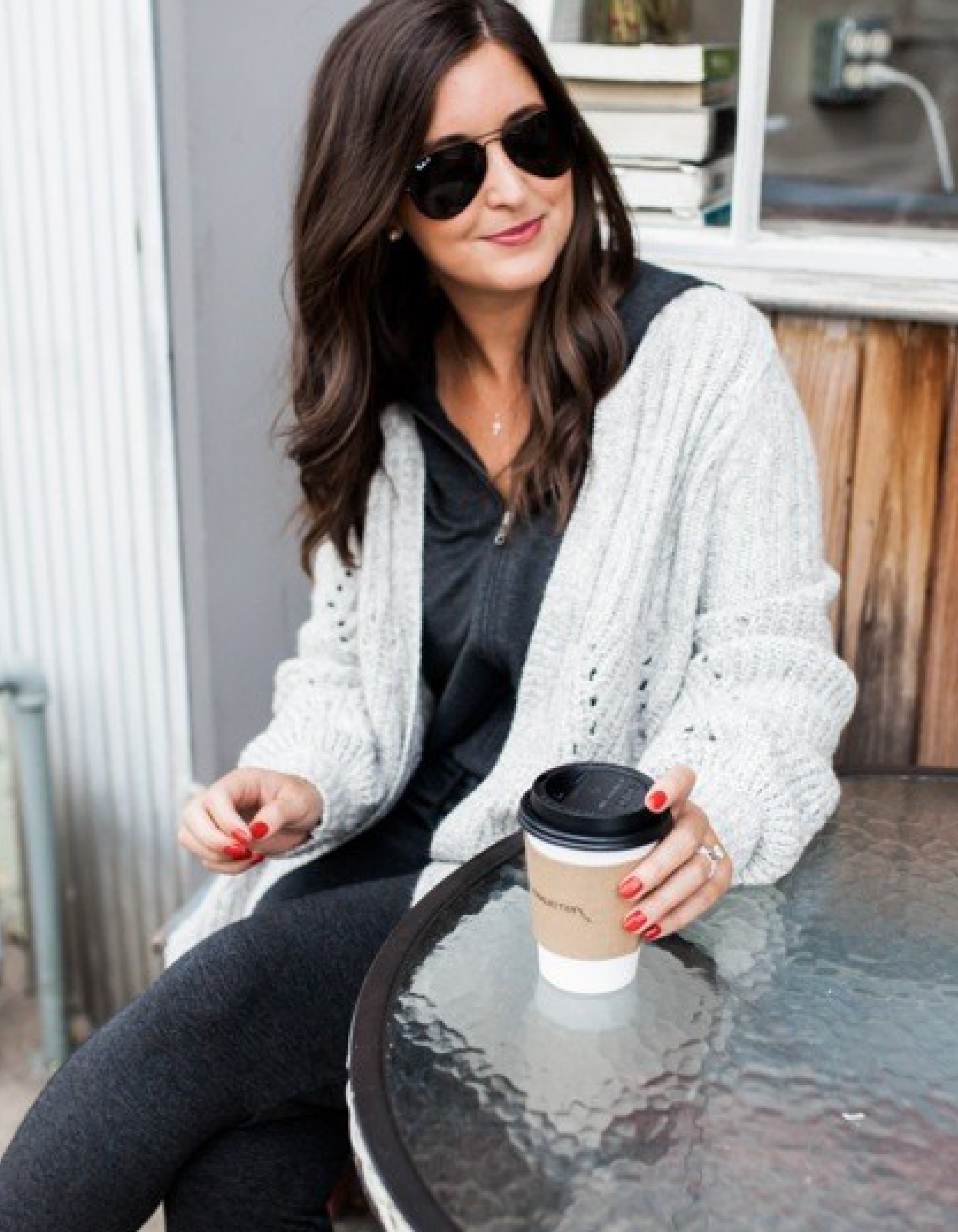 When layering, I like to keep it neutral so one color doesn’t steal the show. The Cathedral Cardigan is perfect to throw on over anything because of its neutral color and wide sleeves—perfect for layering over thicker sweaters. For me, the whole point of a layered look is to be cozy, yet comfortable, and prepared for the changing fall temperatures. I absolutely love the look of the Cathedral Cardigan layered over the Hoodie Playsuit! Both pieces are super comfortable and make the perfect cozy pair for fall. It’s a put-together casual look that’s perfect for your favorite fall activities—like those Pumpkin Spice Latte runs!a-cool look!