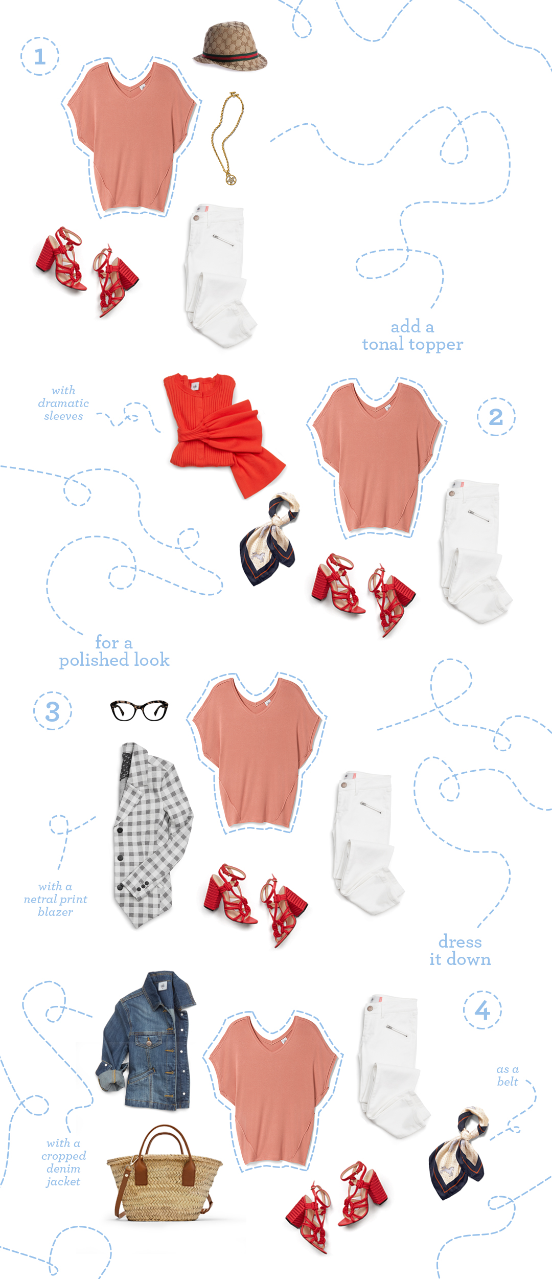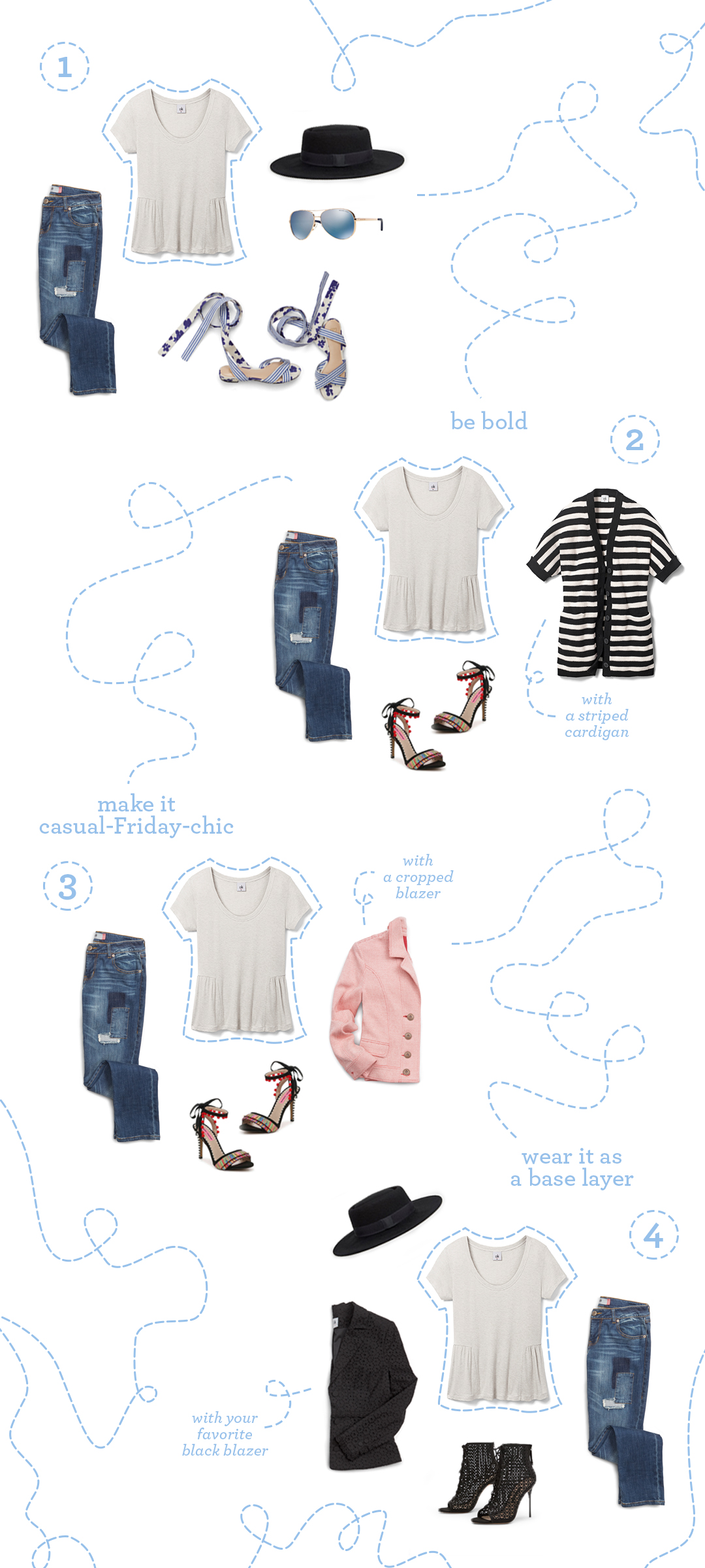 In case you lost count, that was 20…yes 20 looks built around five fabulous tees. And, great news: that’s still just the beginning! With the most versatile collection of must-have tees we’ve ever put forth, we’re challenging you to find even more ways to wear these five basics. Leave your style ideas in the comments below—extra credit if you post to Instagram @cabiclothing.