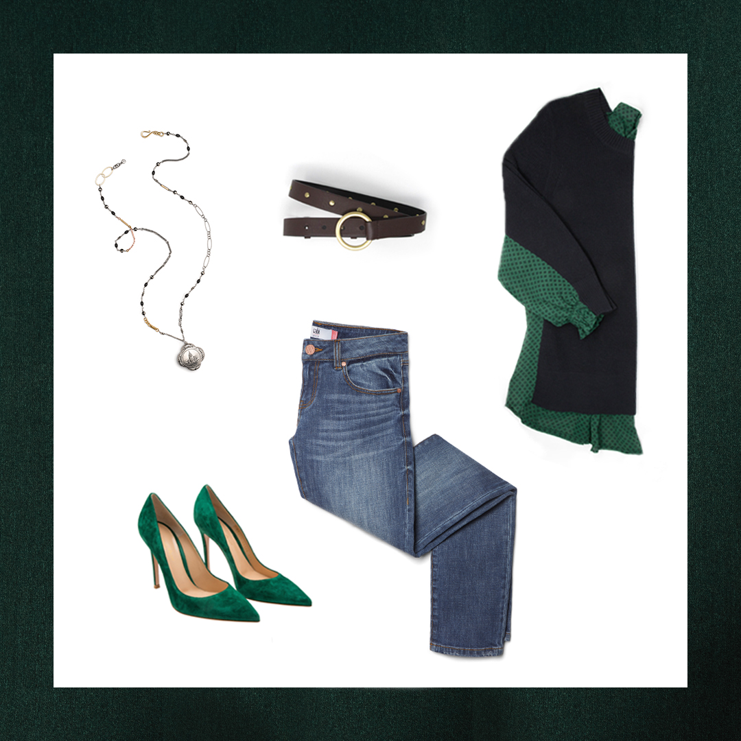 For a sassy, surprising twist, reach for this year’s must-have remix: the Get-Together Sweater! One part sweater, one part blouse, two parts fabulous—this dazzling piece of mixed media is our favorite new way to rock the green trend. Keep the attention on your top with a simple pair of slim jeans, then add stunning pumps in matching emerald for an over-the-top take.