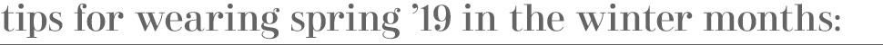 This just in: the Spring 2019 Collection can be a part of your winter wardrobe! Yes, you read that correctly, we said winter. You don’t just have to stare longingly at spring fashion ads, pining for the next warm day as the snow collects gently on your windowsill. If you style wisely, you can incorporate pieces from both Fall 2018 and Spring 2019 into your cold weather ensembles…right now!