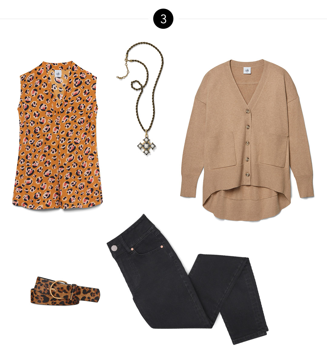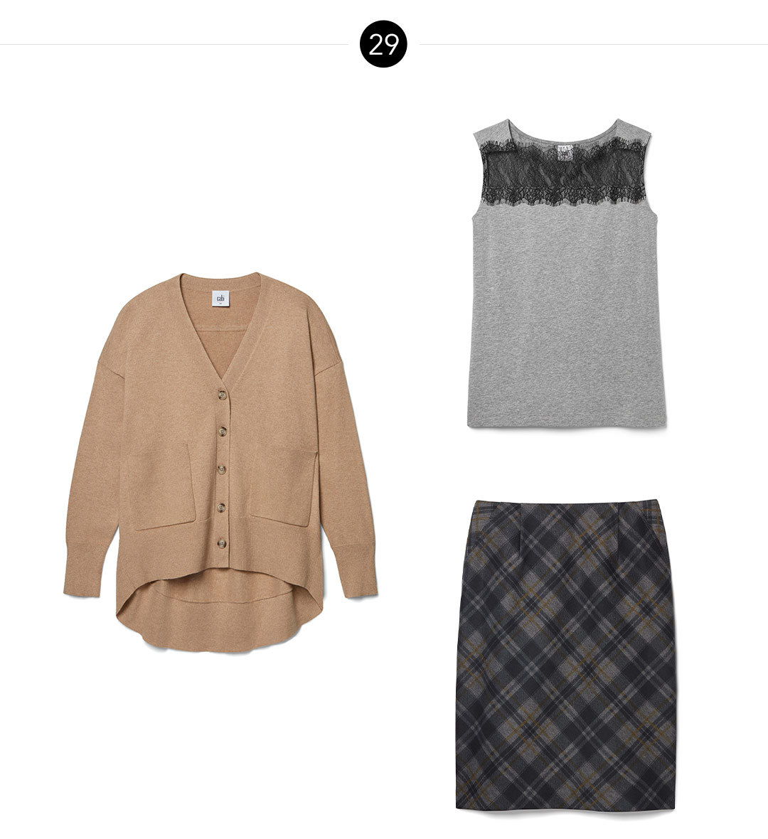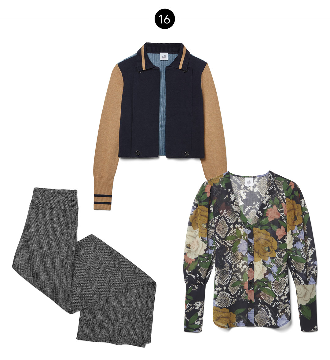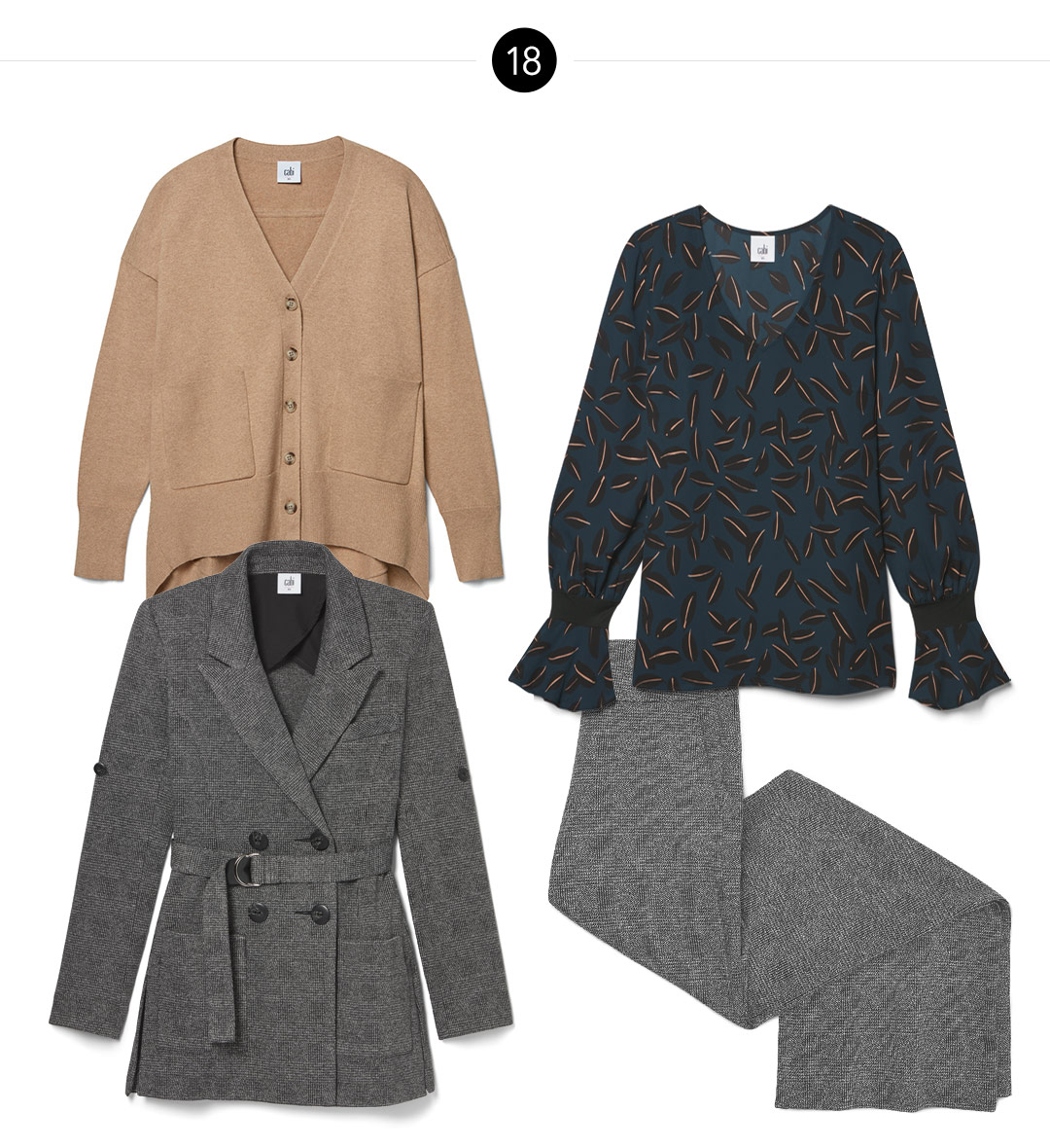 Create a mini capsule of your own at home. Pick a pair of your favorite fall bottoms and style them three different ways. Snap a photo of each outfit and post a collage to Instagram #mixingitup @cabiclothing to share your styling skills with us.