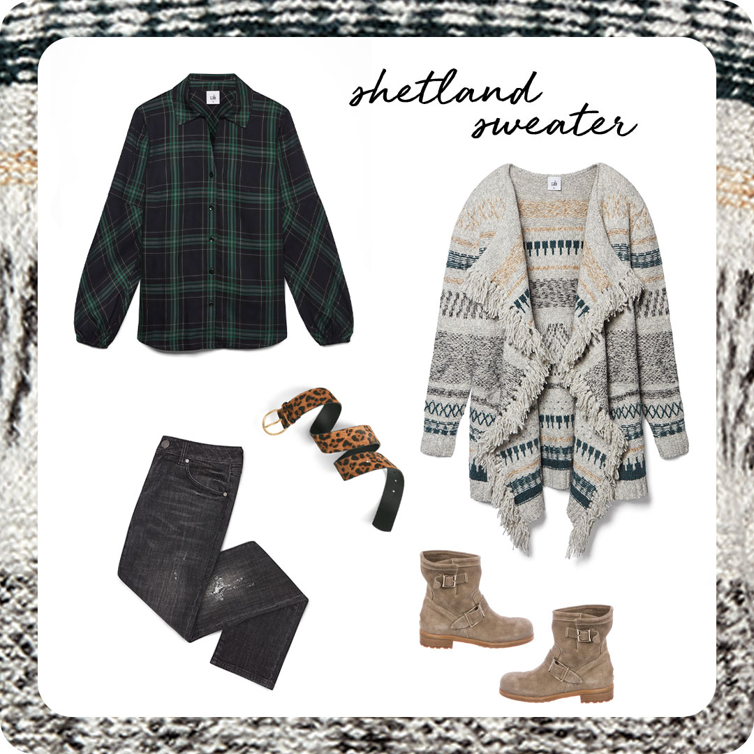 Featured Items: Shetland Sweater, Big Sur Shirt, Slim Boyfriend, Beast Belt, Ankle Boots