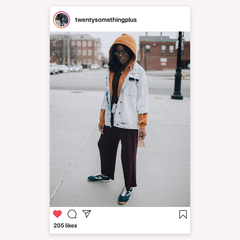 Bethany put her master-layering skills to the test by styling sweats on sweats and topping it all off with the light-wash denim Drew Jacket. She completed this casual-meets-chic look with a pair of sneakers, and we simply can’t get enough of it.