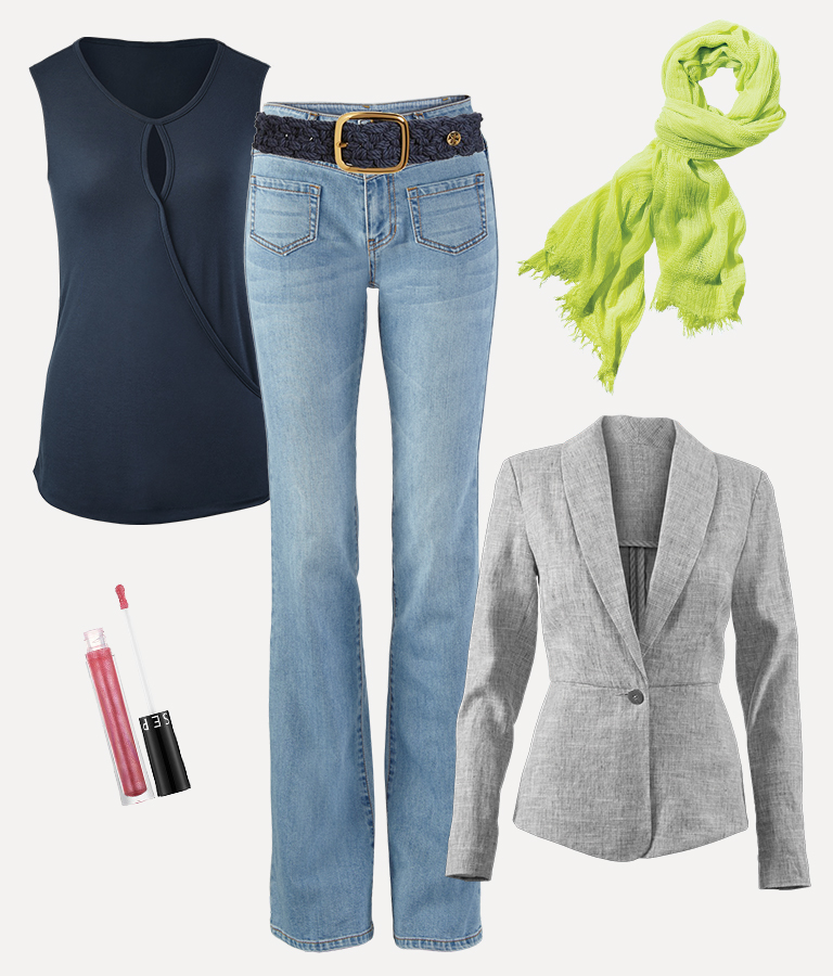 Pair opposites for interest! You can use a piece that feels “dressy” and pair it back to casual separates OR take a seemingly casual piece and dress it up with heels and a bright coral lip!