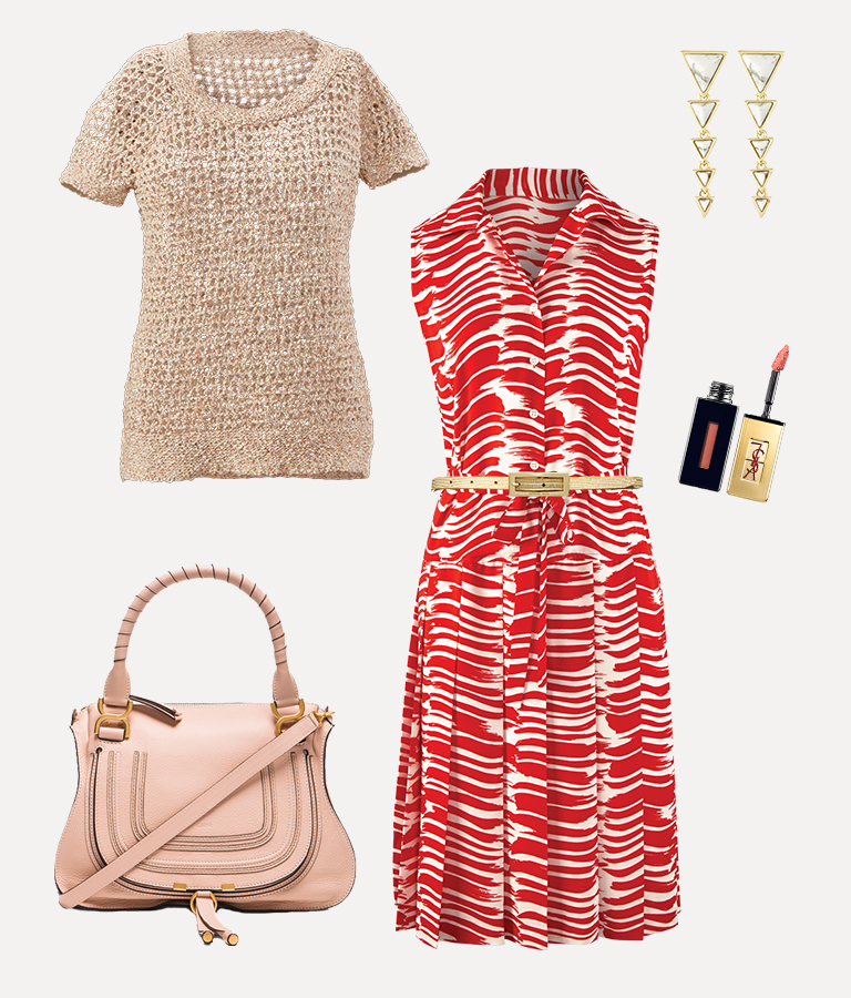 Sorbet Pullover, Chloe Purse, Brushstroke Dress, Michael Kors Belt, YSL Lip Gloss, House of Harlow Earrings