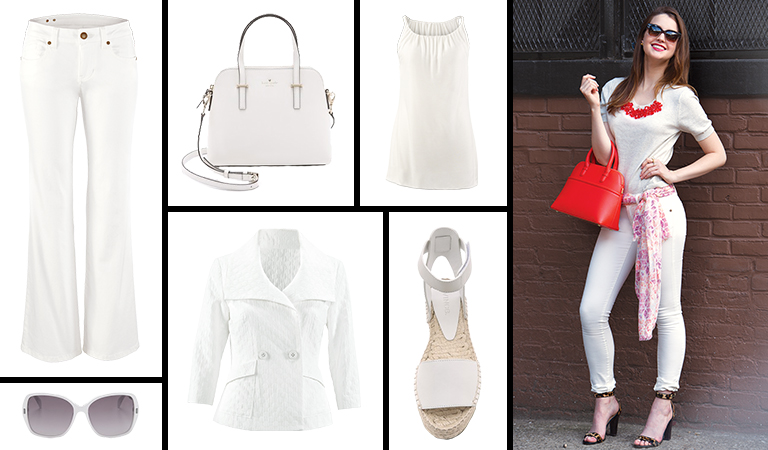 White Wide Leg Jean, Club Blazer, Fifth Avenue Tee, Rock Candy Shell, White Skinny Jean, Candy Print Scarf, Marc Jacobs Sunglasses, Kate Spade Bag, Vince Shoes