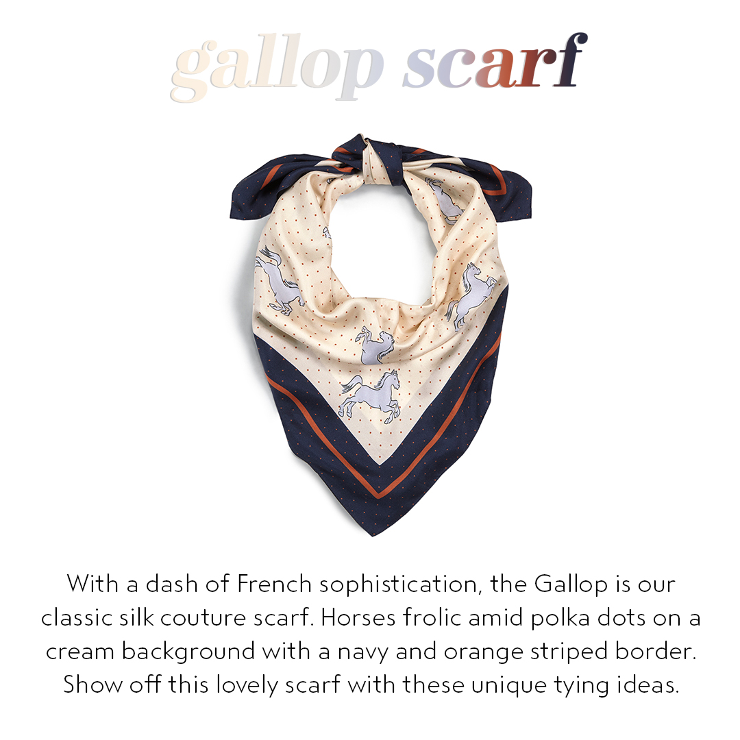 We’ll admit it—we’re in a serious, long-term relationship with scarves. In terms of bang for your buck, there’s simply no other piece that will work as hard for your wardrobe. Our Spring 2018 Collection features two fabulous examples—the Gingham Scarf and the Gallop Scarf—and you can’t go wrong with either. That being said, it requires a bit of ingenuity to leverage all their inherent strengths, and knowing not just when, but how, to tie it is the surest way to get the most out of your scarf collection. That’s why we put together this handy little primer on scarf tying, guaranteed to make all your girlfriends say, “Show me how you did that!”