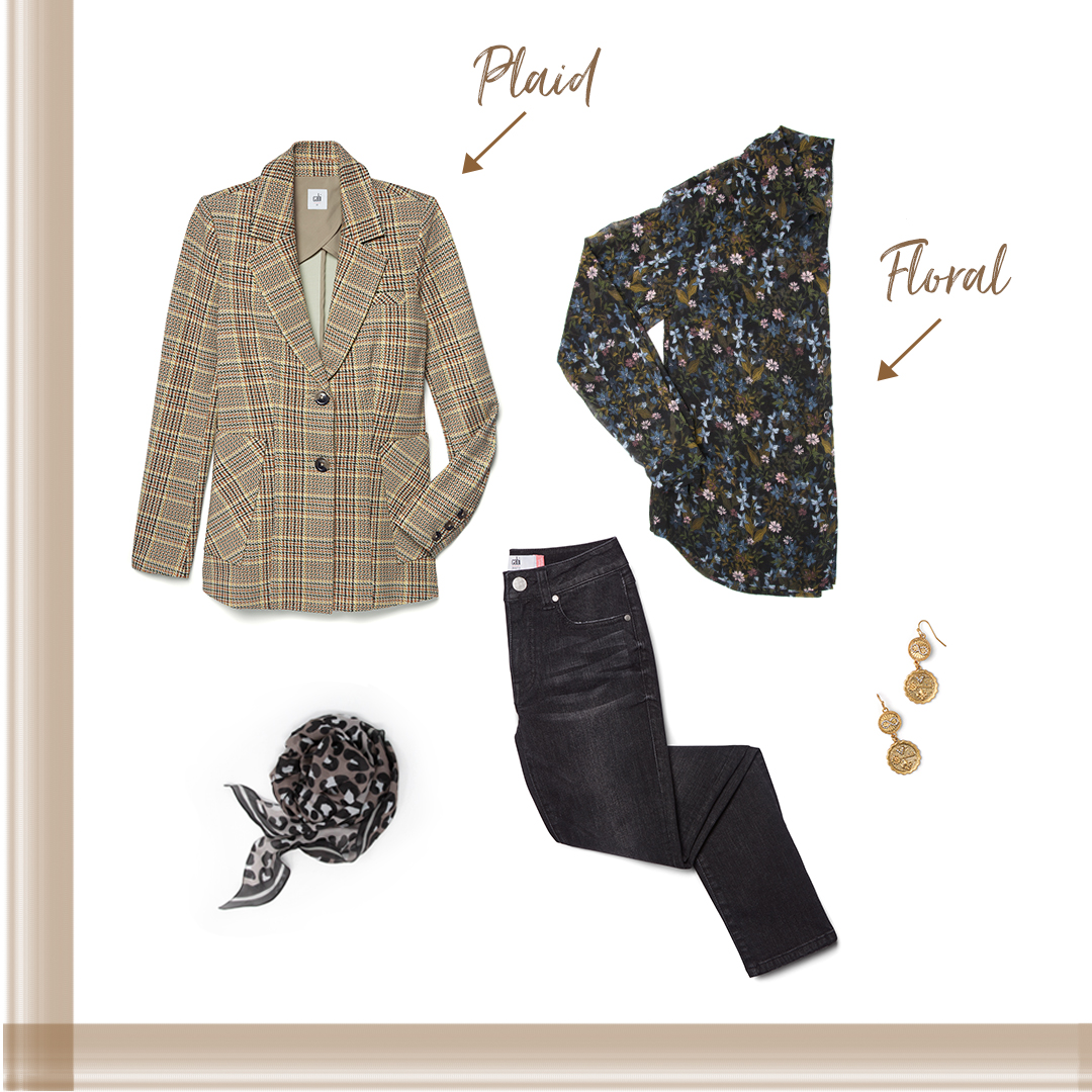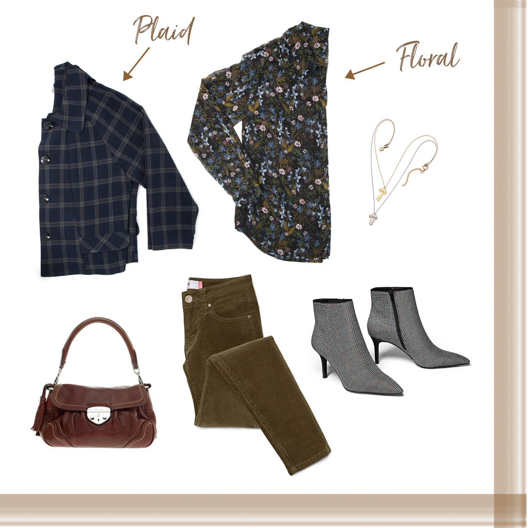 A soft floral blouse can be over-the-top feminine…embrace it! Heighten the feminine energy by reaching for rich patinas or temper it with plaid and corduroy for a more everyday look.