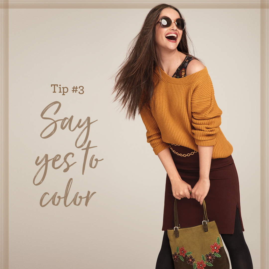 Rich, saturated colors create a high-fashion energy that goes more “folksy” with a voluminous topper for a casual, always-chic take.