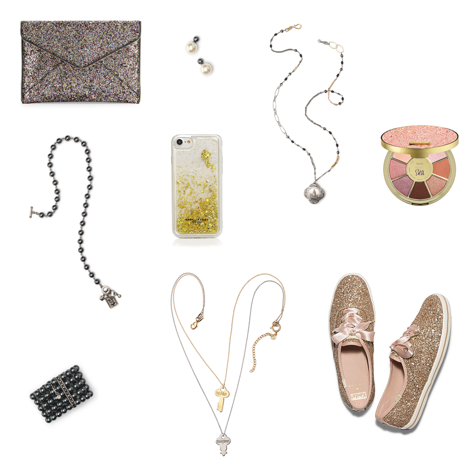 For the lady in your life who’s never underdressed, don’t pick a gift that tries to compete with her already complete (and completely fabulous!) wardrobe. Instead, reach for accessories that’ll add an extra pop to whatever ensemble she’s wearing. Black pearls and lockets—yes, please! Our favorite accessory of the season? A glittery phone case. Love.
