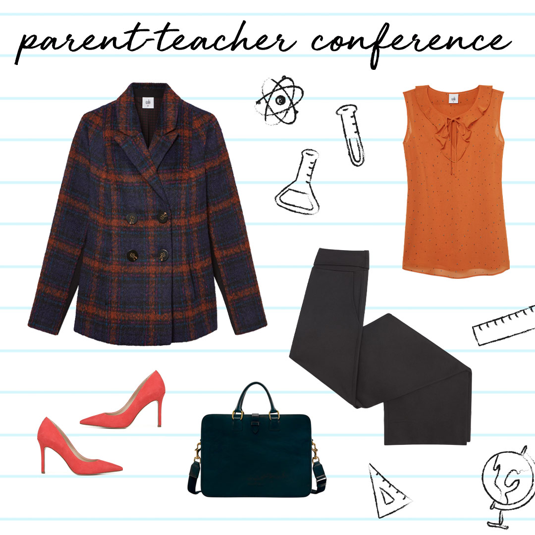 Forget about what the kids are wearing! What will you wear to drop-off and pick-up, parent-teacher conferences, and bake sales? We’ve put together six outfits for various school-related events you’ll be attending this year. Take a look below to make sure you get an A+ on style this school year! Oh, and while you’re at it…why not make a mother-child bonding day out of picking your first-day-of-school outfits? A little extracurricular styling never hurt anyone.