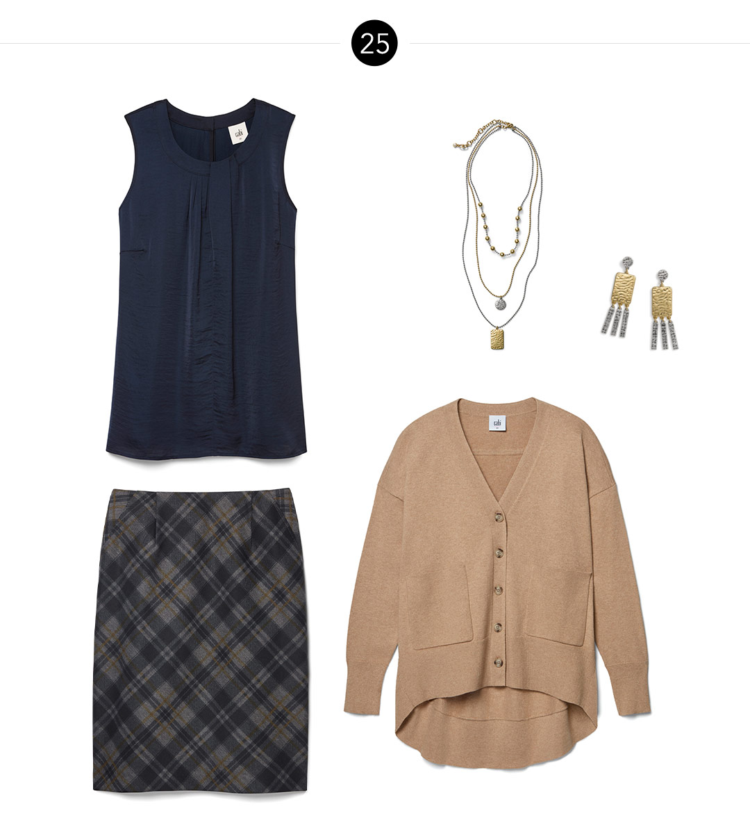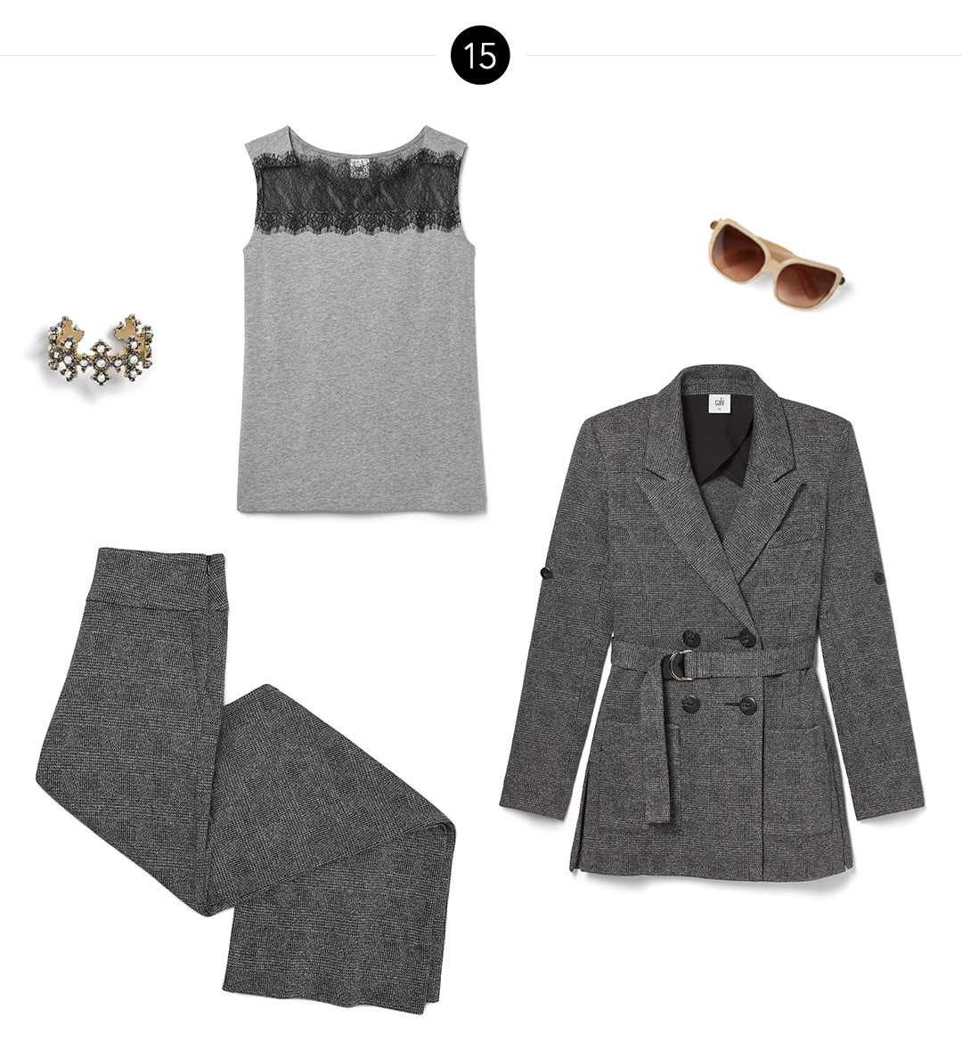 Create a mini capsule of your own at home. Pick a pair of your favorite fall bottoms and style them three different ways. Snap a photo of each outfit and post a collage to Instagram #mixingitup @cabiclothing to share your styling skills with us.