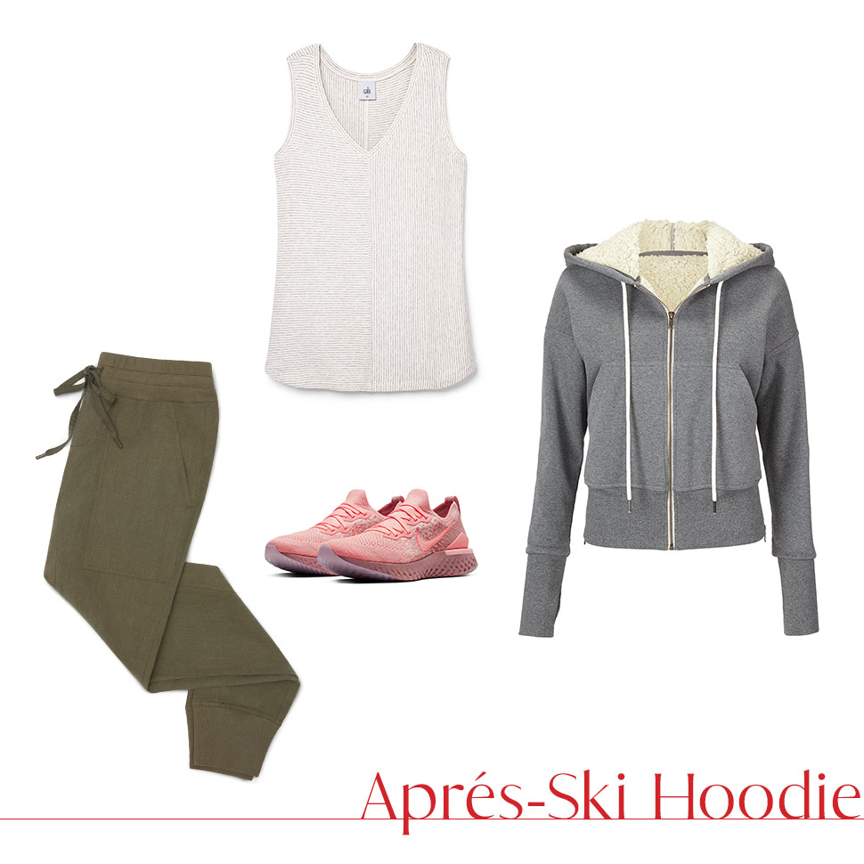 Got places to go and things to see? Try a sporty-chic look by pairing our Après-Ski Hoodie with a striped tank and some loose-fitting joggers. Throw on a pair of modern sneakers so you can keep running after your goals!