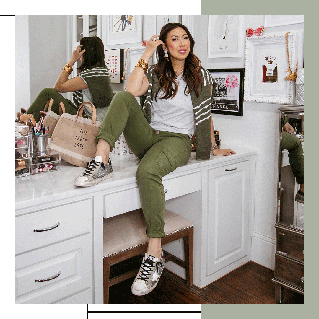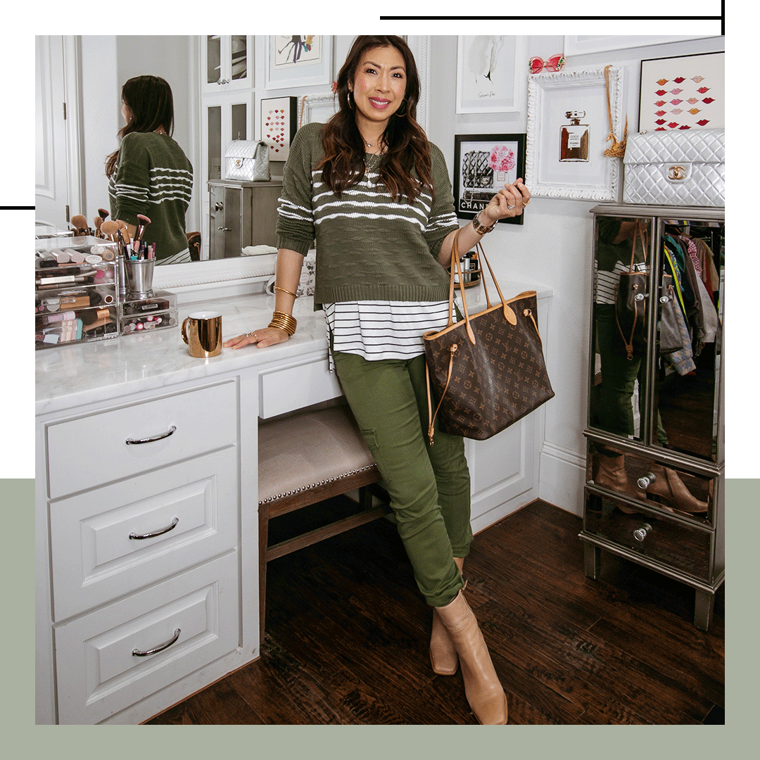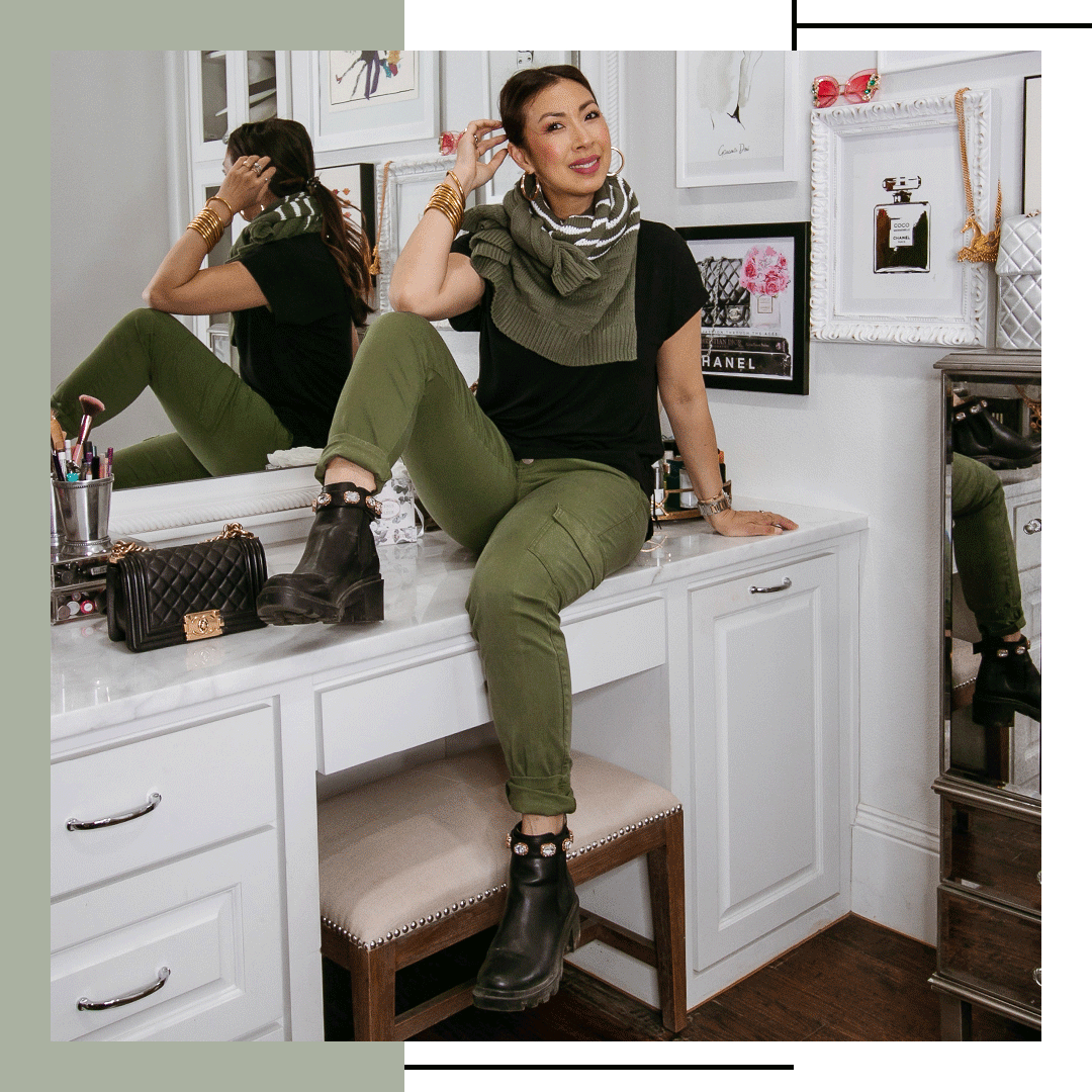 Sign off in style by pairing the Scout Pullover with the matching Button Fly Cargo. We can’t get enough of this army green hue! Layer the ATC Kickback Tee underneath for a contrasting neutral. Best wishes, cabi.