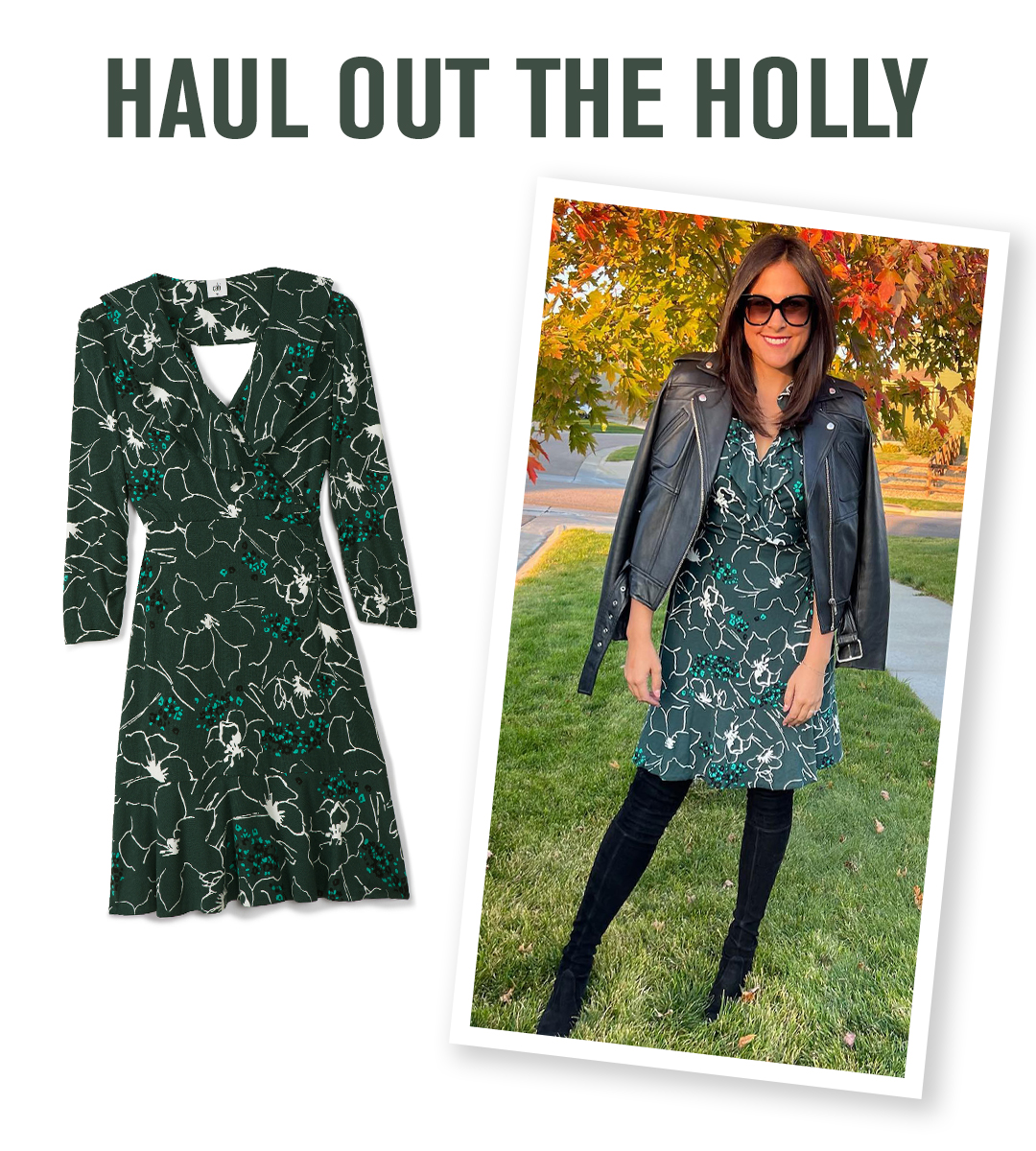 And the ruffles! Nothing will get you into the holiday spirit quite like the Ruffle Up Dress. This hunter-green dress has a cinched waist and long sleeves, with floral outlines for a unique addition to your various patterns. A ruffle at the neckline frames your face to ensure you’re the center of attention.